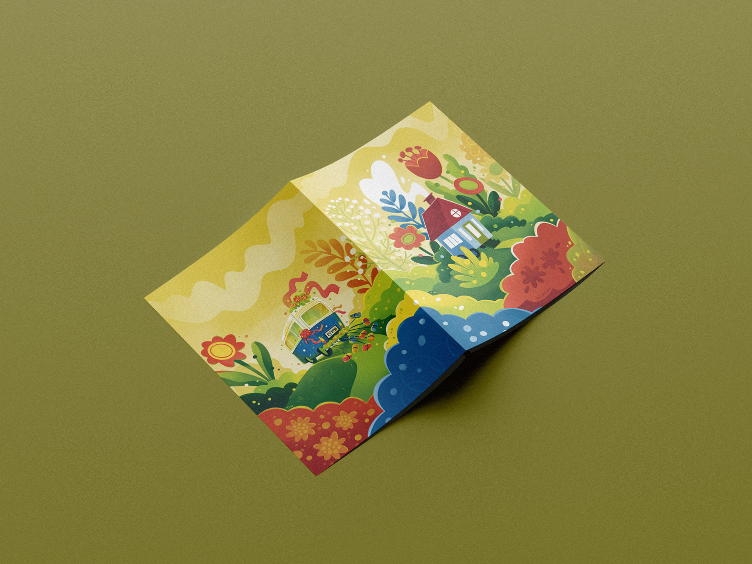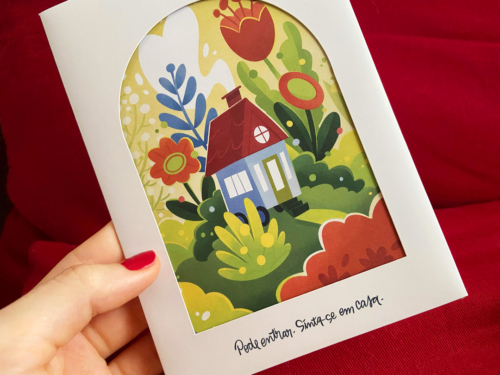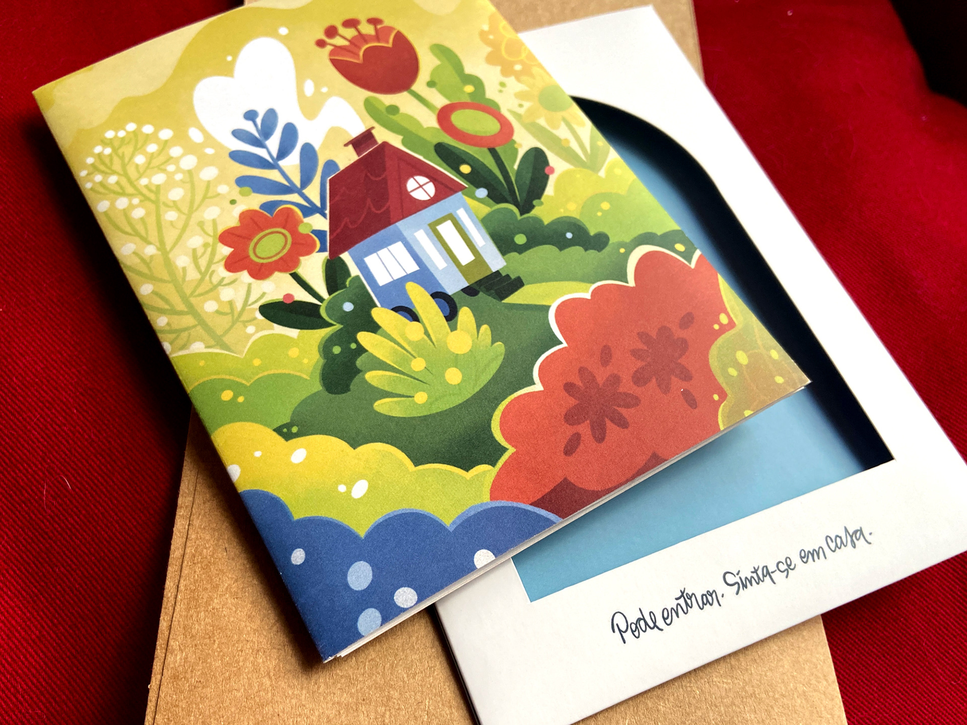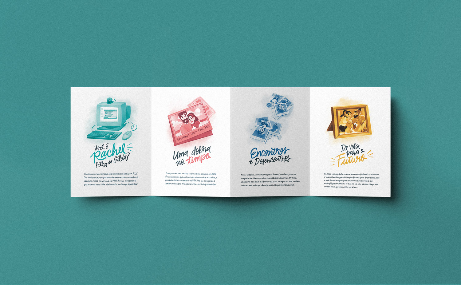 O convite conta a história de como os noivos se conheceram e se apaixonaram, até chegar num pôster com as informações pra festa, ilustrado em torno do tema “Home is wherever I’m with you”.
