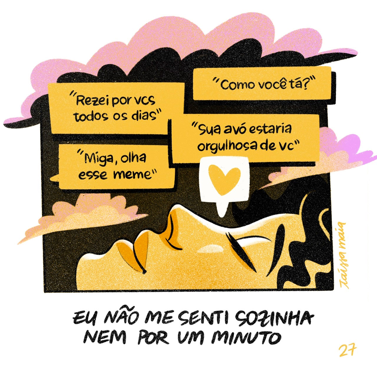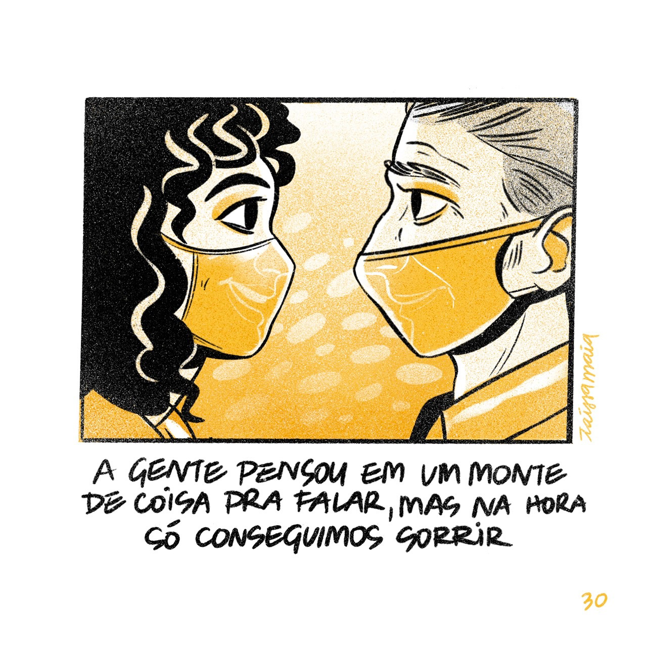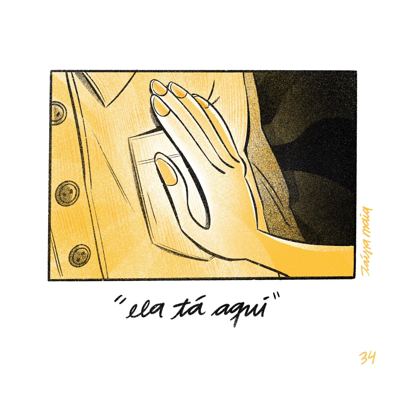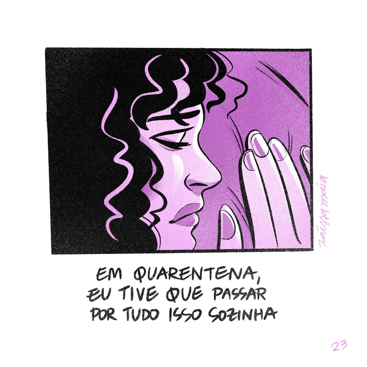 Um mês depois eu fiz esta série de ilustrações pra contar como tudo aconteceu, e postei a nossa história nas redes sociais, quadro a quadro e diariamente, com o objetivo de lidar com a minha própria dor, além de amparar e ajudar quem estivesse passando pela mesma situação.